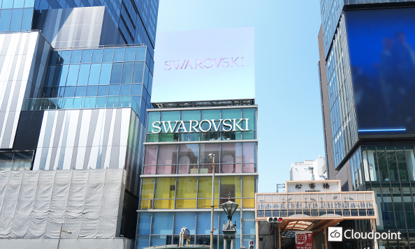 心斎橋南船場のビル屋上に、関西初となる旗艦店「Swarovski大阪」のL字 大型LEDビジョンを導入いたしました。