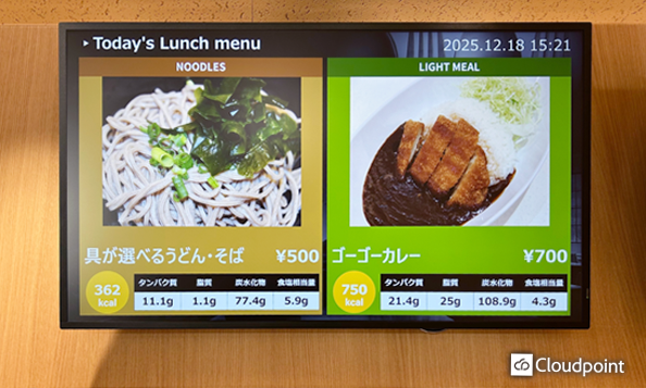柔軟な情報発信を実現した食堂サイネージ