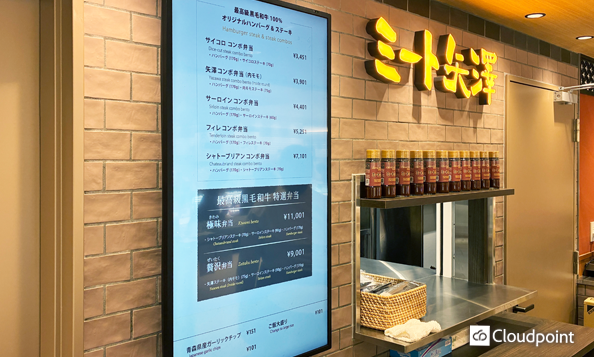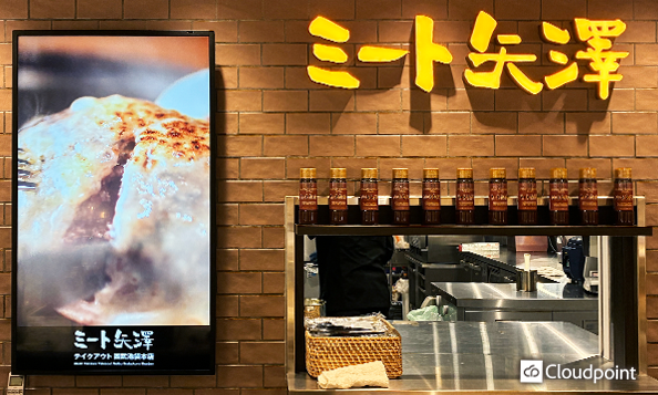 テイクアウト専門のミート矢澤西武池袋本店に、集客力と運用効率を向上させるデジタルサイネージを導入しました。